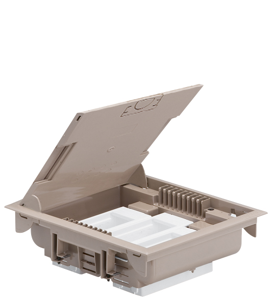 Yükseltilmiş döşemeden kabloların (25 ile 55mm) direkt olarak çıkışının istendiği uygulamalar içindir. IP20 - IK08 koruma sınıfına sahiptir. NF C 15-100 standartlarına uyumludur. 2 kısımlı alüminyum ve polyester gövde yapısı bulunmaktadır. Ayrıca neopren contalıdır.