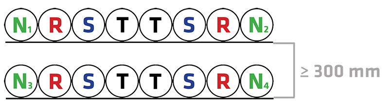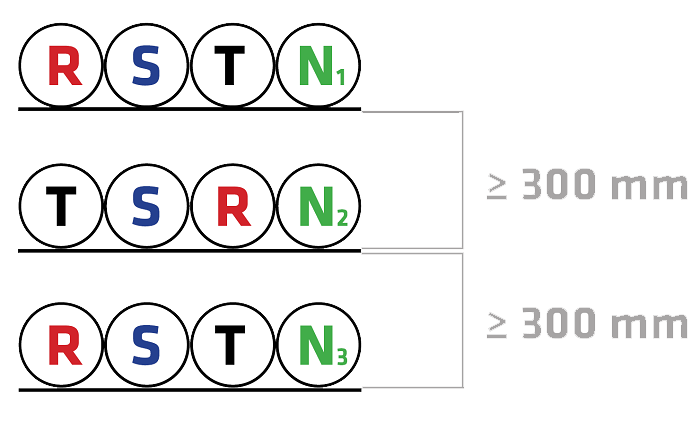 Bu nedenle; Elektrik Kuvvetli Akım Tesisleri Yönetmeliği’nde ve uluslararası standartlarda belirtilen faz sırası ve kabloların dizilimi konfigürasyonları uygulanmalıdır.