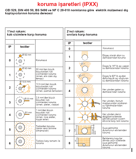 Kullanılan elektriksel malzemenin IP koruma rakamı ne kadar büyükse koruma değeri o kadar yüksektir. Seçilecek ürünler hem kullanıcı güvenliği hem de çalışma performansı sağlamak için uygun koruma düzeyine sahip olmalıdır. Sıvılara karşı koruma değerini ifade eden IP koruma numarasına özellikle dikkat edilmesi gerekir. Kullanıcı güvenliğini direkt etkileyebilecek bir iletkenlik riski oluşmaması için dış ve nemli ortamlar için doğru IP koruma derecesi seçilmesi çok önemlidir.