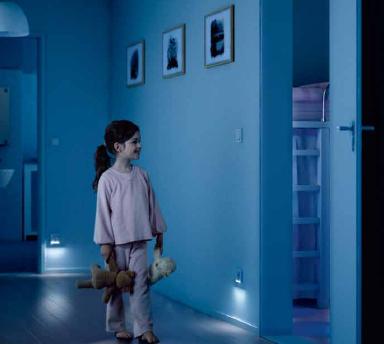 Merten serisi normal prizlere LED aydınlatma modülü eklenerek gece lambalı hale dönüştürülebilir.
