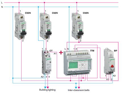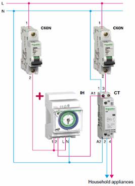 Schneider Electric zaman saatlerinin bazı örnek uygulamalarını aşağıdaki bağlantı şemalarından inceleyebilirsiniz.