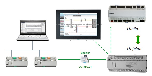 RVS61... ile modbus haberleşmesi kurularak bina otomasyon sistemine entegrasyon yapabilirsiniz.