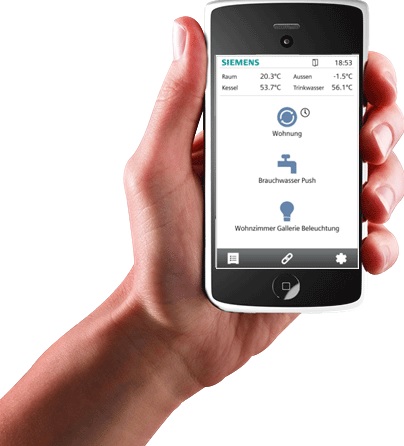 OZW672... ile bulut sistemi üzerinden veya akıllı telefon uygulaması SiemensApp ile uzaktan kontrol yapabilirsiniz.