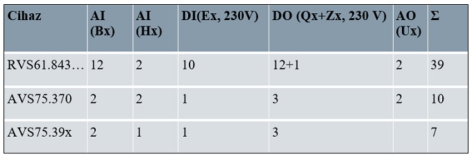 Tablo 1.1 RVS61 kontrol cihazı ile ilave modüllerin giriş-çıkış sayıları