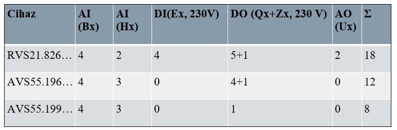 Tablo 1.2 RVS21 kontrol cihazı ile ilave modüllerin giriş-çıkış sayıları