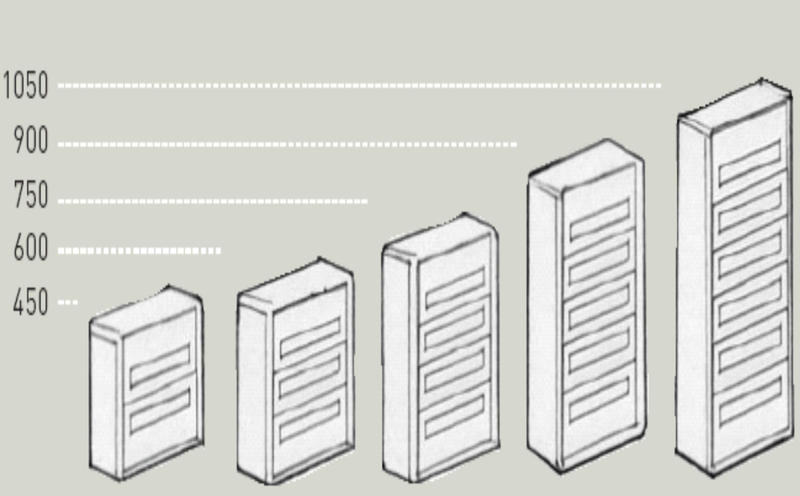450 mm’den 1050 mm yüksekliğe kadar çözüm sunabilen kofralarda, genişlik 575 mm, derinlik 147 mm’dir. (Kapısız)
