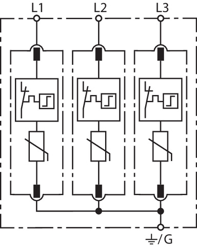 The multipole DEHNguard MU surge arrester, open-type 1 SPD as per ANSI/UL 1449, consisting of the base part and plug-in protection modules. High device reliability due to arrester monitoring with "Thermo Dynamic Control". Allows protection of terminal equipment. For the protection of 3-phase wye systems.