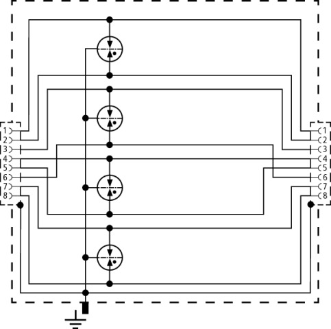 Universal arrester for Industrial Ethernet, Power over Ethernet (IEEE 802.3 compliant up to PoE++ / 4PPoE) and similar applications in structured cabling systems according to class D up to 100 MHz. Protection of all pairs by powerful gas discharge tubes. DIN rail mounted adapter type with sockets.